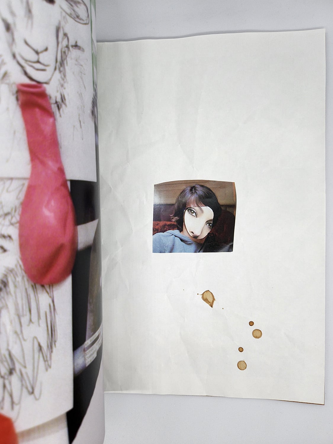 初期制作ZINEと同じように中にサンドペーパーをはさみこんだり、わざとしわをつけたり、コーヒーの染みをつけたり、落書きをしたり、糊で貼って破いてみたり、一冊一冊が微妙に異なる仕上がりになっています。